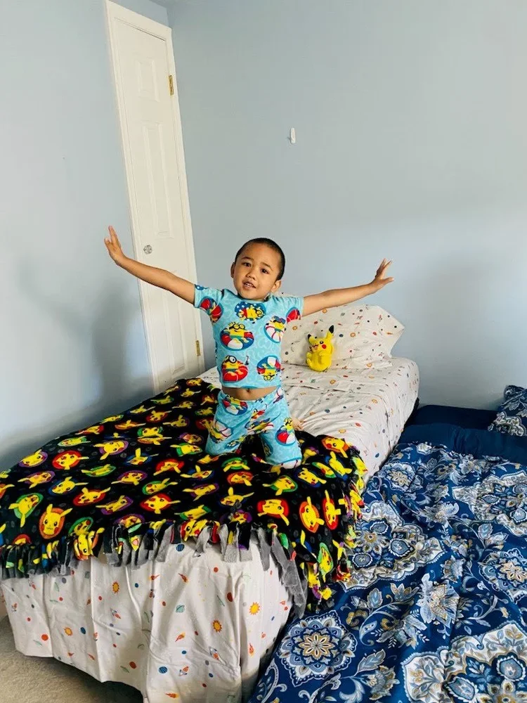 When Tasha lost her job, she and her children moved in with relatives, where her son Malik slept on a pile of blankets on the floor. He never complained, though exhaustion was taking a toll—his grades slipped, and he struggled to stay awake in school. Tasha, now working two part-time jobs, did all she could to keep them fed and safe, but comfort and stability felt out of reach. Then she heard about Beds for Kids. Just two days later, volunteers arrived with new twin beds for all three children. Malik’s came with soft sheets, a warm comforter, bedtime books, and even a stuffed animal. That night, he finally slept soundly. In the weeks that followed, Malik was a new child—rested, engaged in school, smiling, and drawing rockets and stars. That simple bed gave him more than rest. It gave him a place to dream, and it gave his mother something just as precious: hope.
